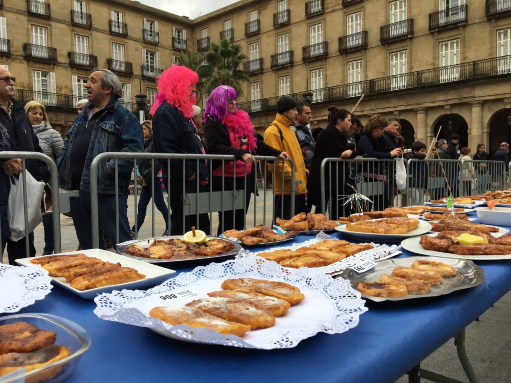 Denontzako saria izan genuen atzo. Torradak eta pontxea prestatzeko goiz altxatu ez, baina Aratuste giroan murgiltzeko asmoz Plaza Barrira hurbildu direnek Manu Iturregik prestatutako pontxe berezia dohainik dastatzeko aukera izan dute. 2013ko Aratusteetan Farolin izan zen Barman ezagunak txakolin eta ginebraz eginiko pontxe hotz berezia eskaini digu aurten. Eta horrez gain, aurten lehenengoz, Makilaren Kofradiako kideek torradak prestatu dituzte ekimen gastronomikoa ezagutzera bertaratu direnen artean banatzeko. Behin tripa beteta, ostegunetik aurrera eramango ditugun mozorroak lotzea baino ez zaigu falta, Aratuste asko geratzen baita oraindik!