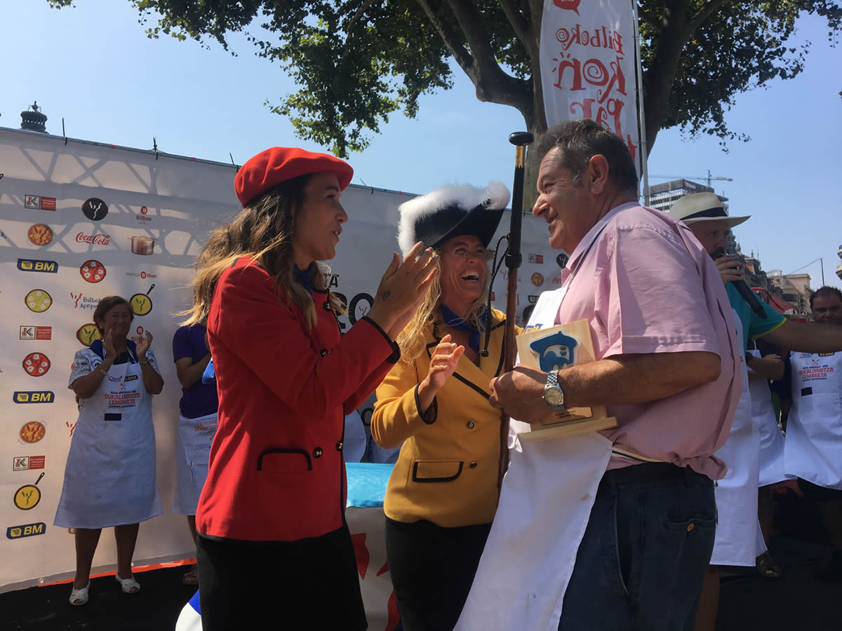 Zipi eta Zape bikote aretarrak irabazi du gaur goizean Aste Nagusiko Sukaldaritza Lehiaketako marmitako-txapelketa, kategoria orokorrean; txapela ez ezik Kantauriko Marmitakoaren XII. bandera ere lortu du. Bitartean, Txomin Barullo konpartsak ere txapela lortu du gaur; batu duen hirugarrena izan da, patatak saltsa berdean eta bizkaitar erako bakailaoan ere nagusitu baitzen. Bestalde, Bilboko Konpartsak Arrain Fish Festivaleko (BKAFF) proba puntuagarri denak amaituta, Txomin Meabek jaso du arrain eta zefalopodoen sukaldari trebeenaren makila. Sariak banatu dizkiete Bea Sever pregoilariak eta Itsasne Núñez txupinerak.