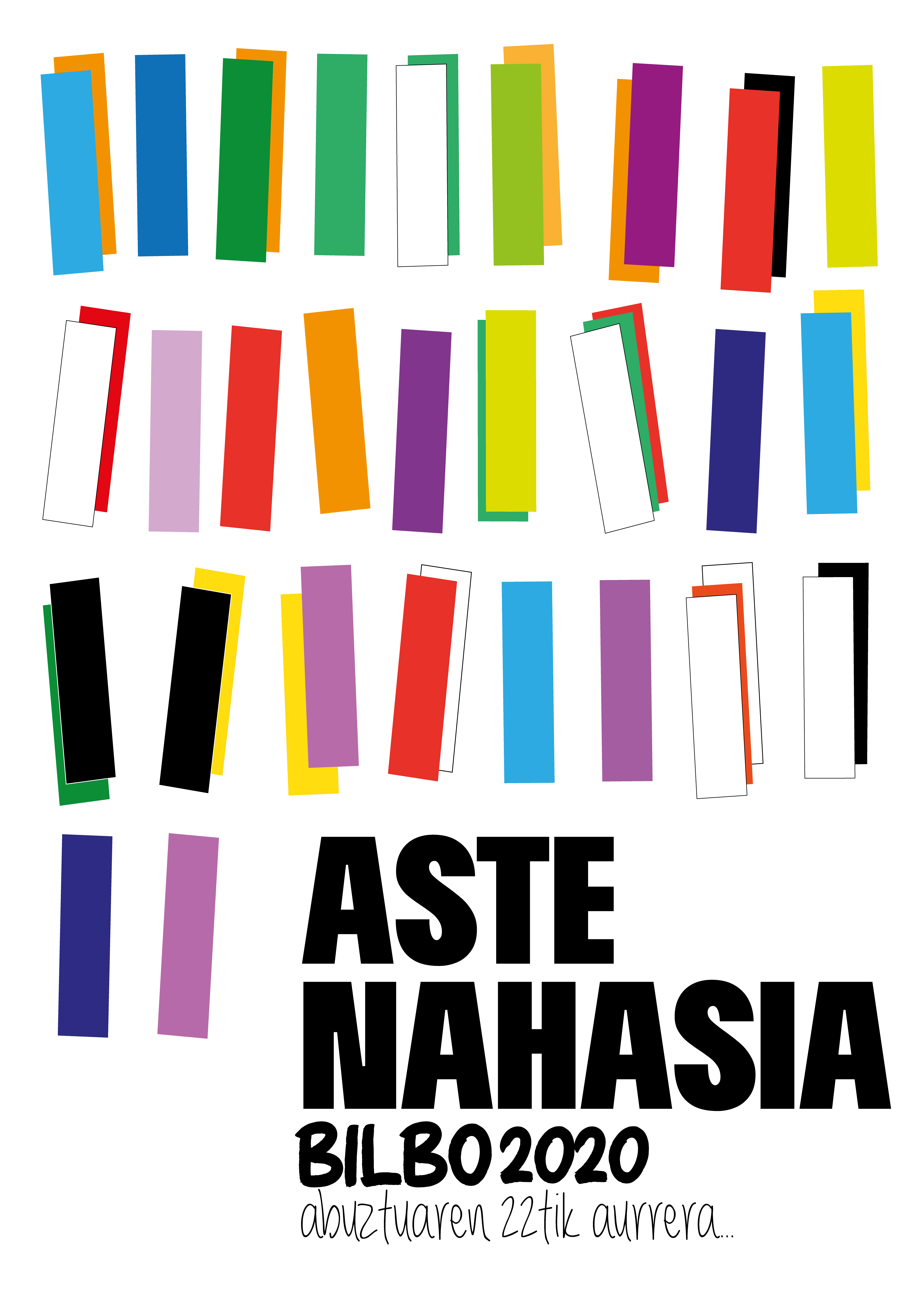 Datorren abuztuaren 22an hasi behar zen Aste Nahasia iragartzeko afitxa ere aukeratu zuen atzo Bilboko Konpartsek abiatutako kartel-lehiaketaren epaimahaiak. Irune Usunaga Gilek aurkeztutako “Kolore Nagusiak” lana izan da lehiaketaren irabazlea, merezimendu osoz. Artistak “konpartsen koloreak erabiliz bertoko erreferenteen eta diseinu garbi baten aldeko apustua” egin du, epaimahaikideen arabera. Joan den uztailaren 18an deitu zuen lehiaketa federazioak, eta orain dela hiru egun finalerako sailkatutako hiru lan aurkeztu zituen: “Bilbao Patas Arriba”, “Zurrunbiloa 2020” eta “Kolore Nagusiak” irabazlea. Diseinuaren eta arte ederren inguruko ikasketak edo lanbideak dituzten bost konpartsakidek osatu dute epaimahaia.