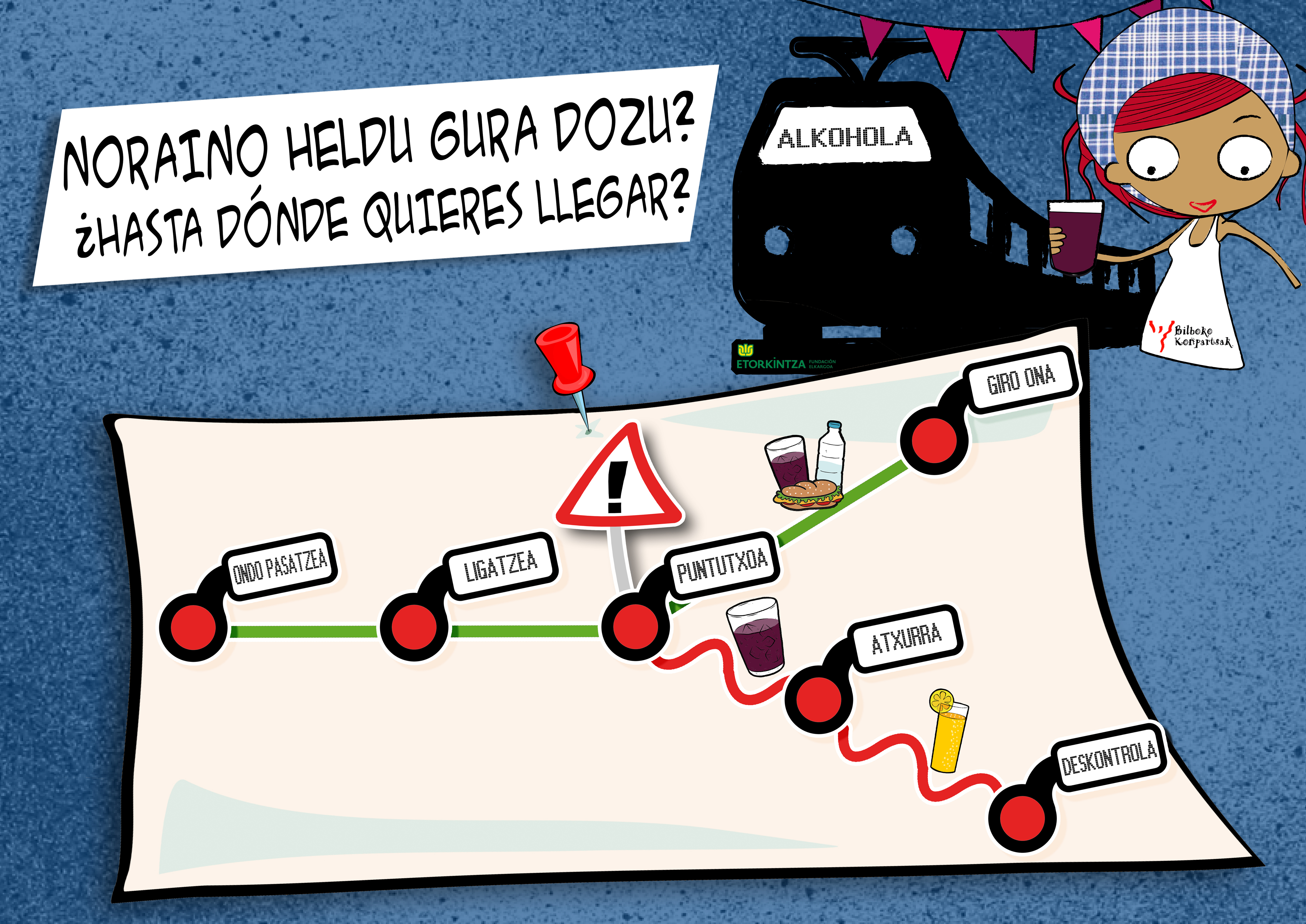 Beste urte batez, alkoholaren kontsumoaren arriskuak murrizteko kanpaina abiatzen dute elkarrekin Bilboko Konpartsek eta Etorkintza Elkargoak. Euren helburu nagusia Aste Nagusian alkoholaren kontsumoari buruzko egiazko informazioa, objetiboa eta ez moralizatzailea zabaltzea da.