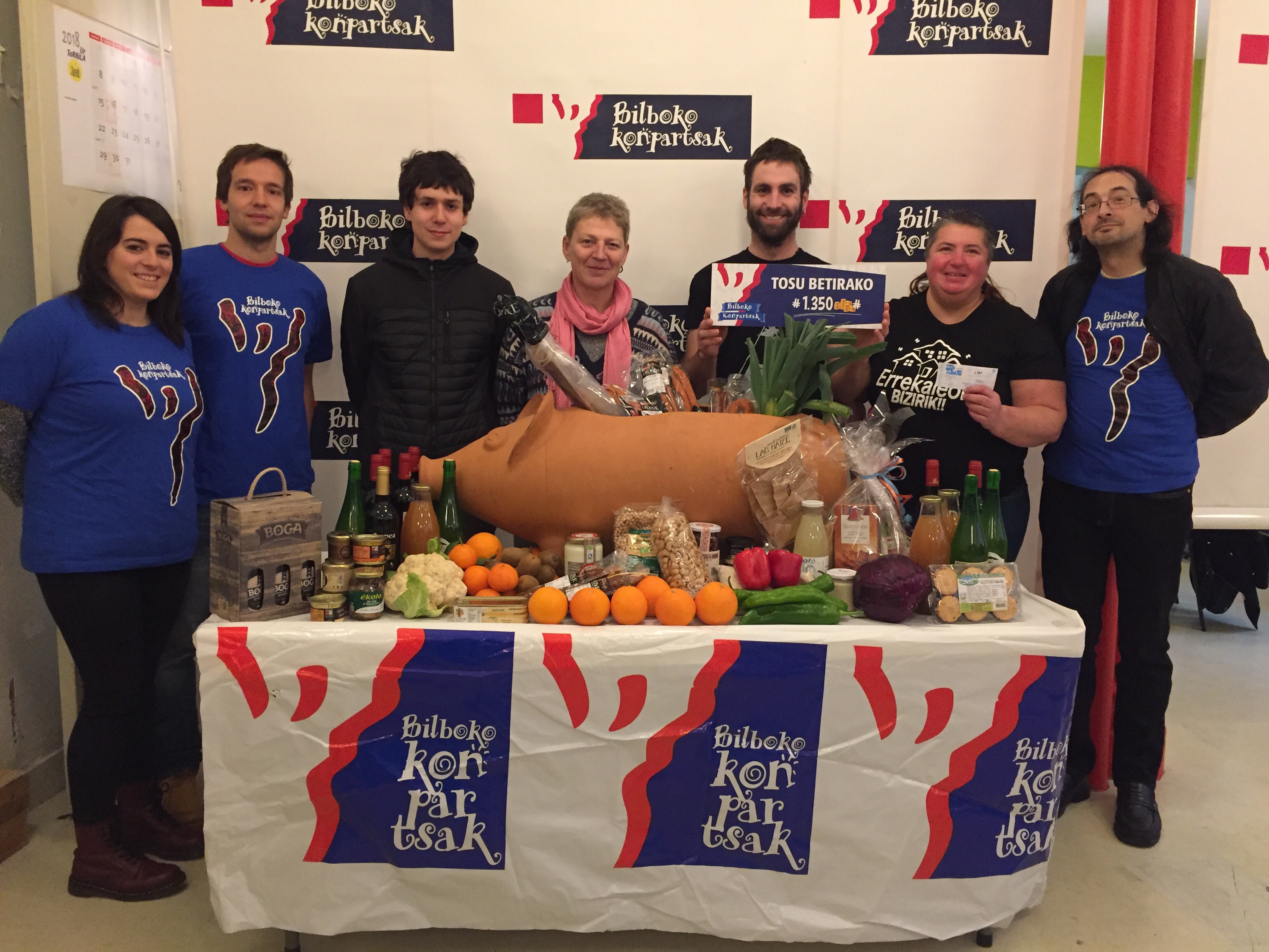 Gaur banatu dugu Bilboko Konpartsok San Tomasen egutegiak eta pintxoak salduz lortutako dirua eta egun horretan zozkatutako saskia