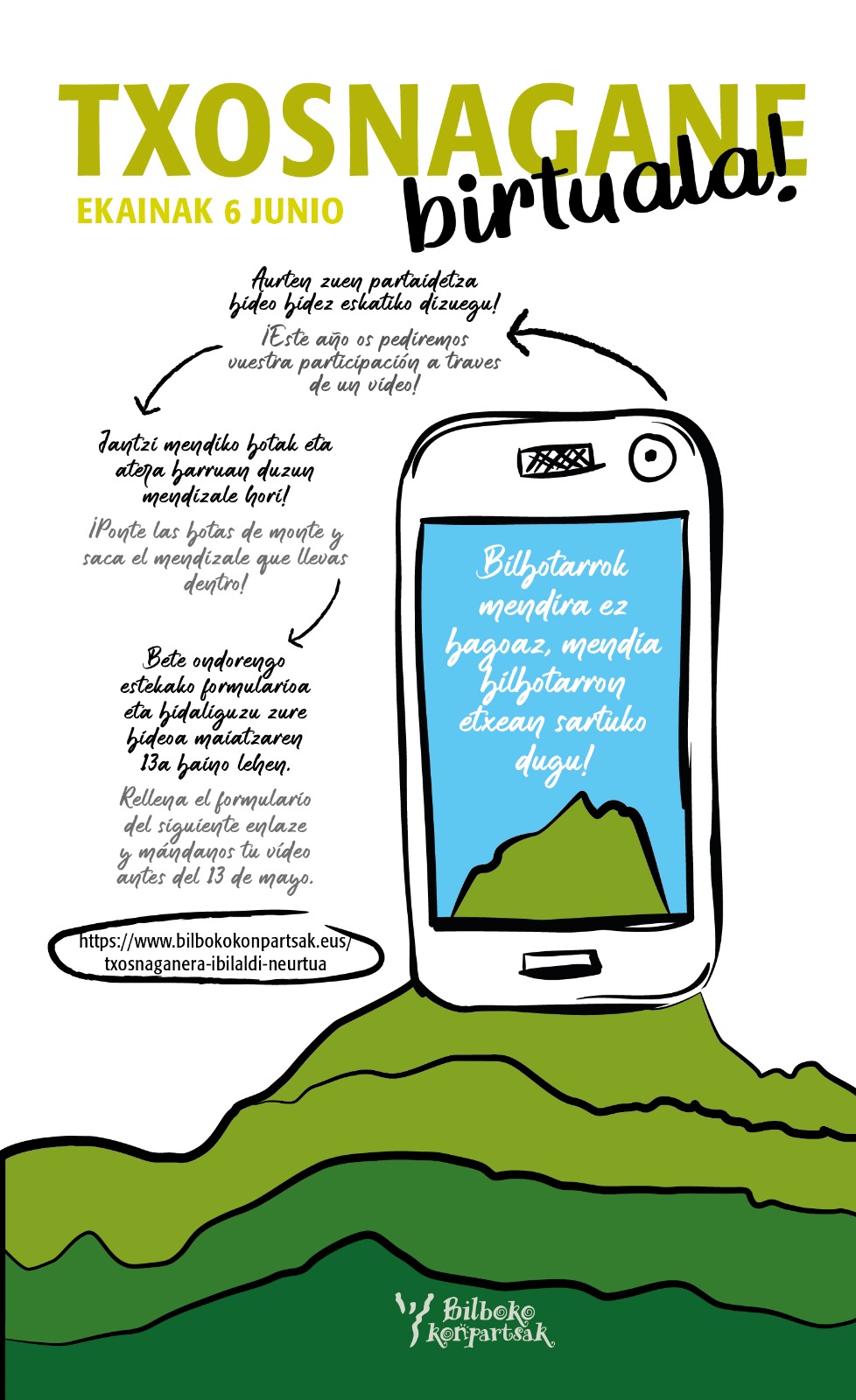 Este año las comparsas realizaremos un recorrido virtual. Ante la situación generada por la pandemia del Covid 19 y teniendo en cuenta que esta actividad reúne habitualmente a cientos de personas, hemos priorizado los criterios de prevención, salud y cuidado mutuo, por lo que realizaremos la prueba virtualmente. De hecho, recordamos que el ascenso a Txosnagane es un evento no competitivo para divertirse y disfrutar de la naturaleza.