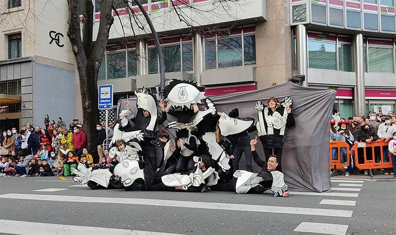 Además, con el fin de fomentar los valores no competitivos, durante el recorrido habrá dos puntos señalizados con banderas de Bilboko Konpartsak donde se animará a las participantes a realizar parte de la coreografía preparada para el jurado (no más de 1 minuto). A la hora de optar al premio, se valorará positivamente la actitud carnavalesca mantenida durante el recorrido completo y en los dos puntos señalizados en concreto.