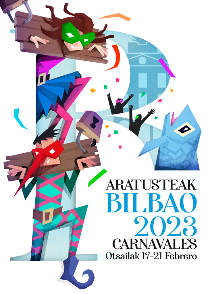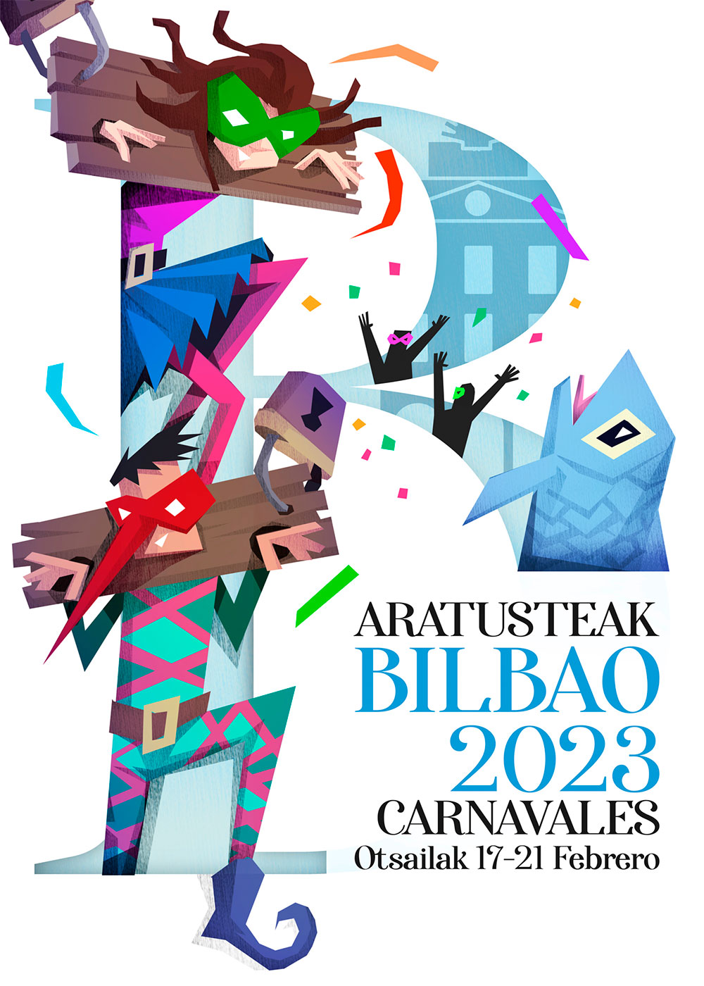 «B DE BILBAO», del autor, Óscar Méndez, será el cartel que anuncie los Carnavales de Bilbao de este año, según ha anunciado hoy la Comisión Mixta de Fiestas. Los votos emitidos por los ciudadanos han tenido un peso del 66% en la elección del cartel ganador (los votos emitidos presencialmente un 33% y otro tanto los emitidos online), el último tercio lo ha aportado la opinión del jurado.