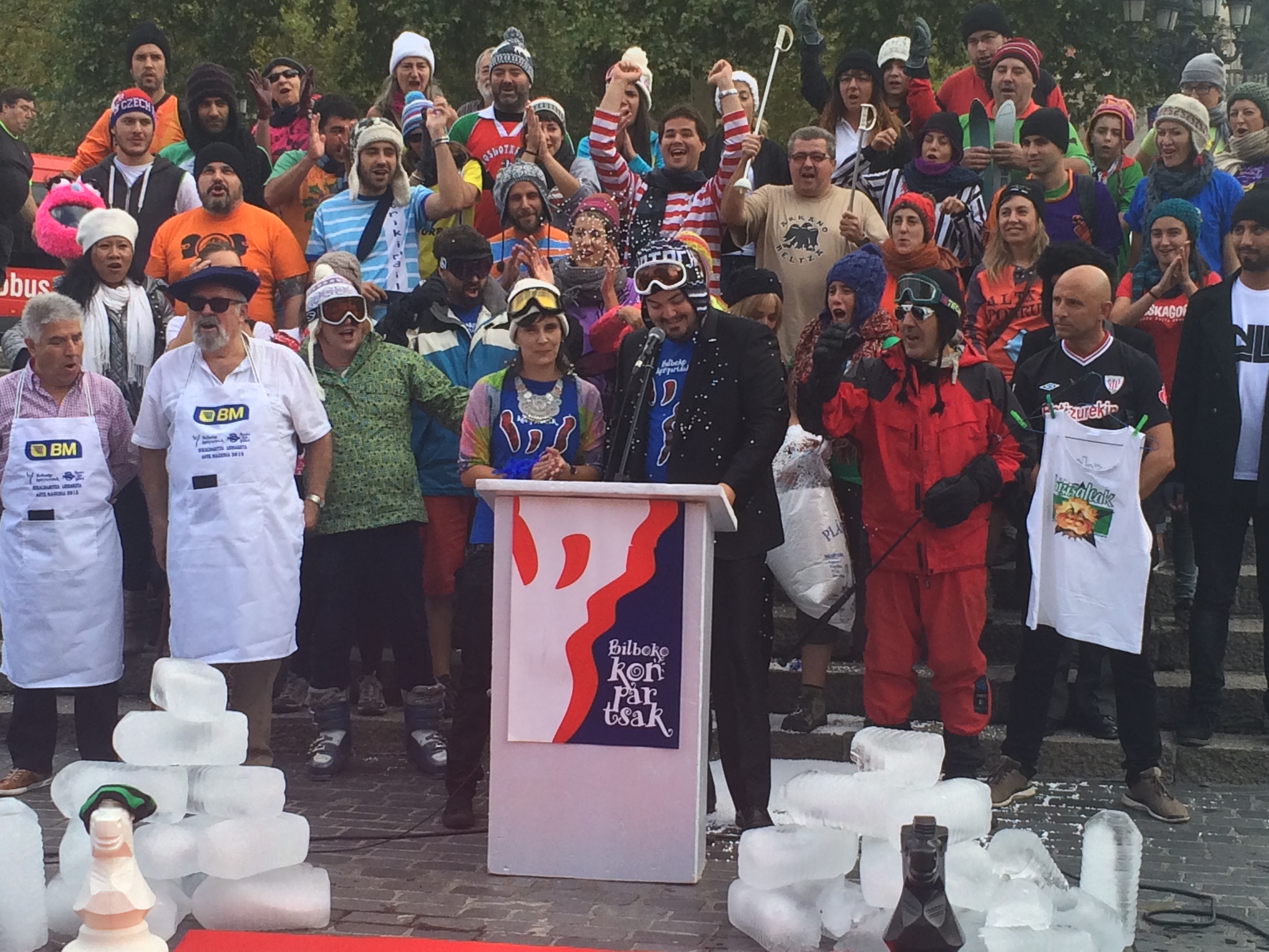 Como veréis, una vez mas las konparsas de Bilbo hemos puesto el listón un poco más alto y este año en Aste Nagusia vamos a ver un fenómeno nunca visto hasta ahora en el mundo de las fiestas populares y participativas; vamos a traer hielo en Agosto a Bilbo!