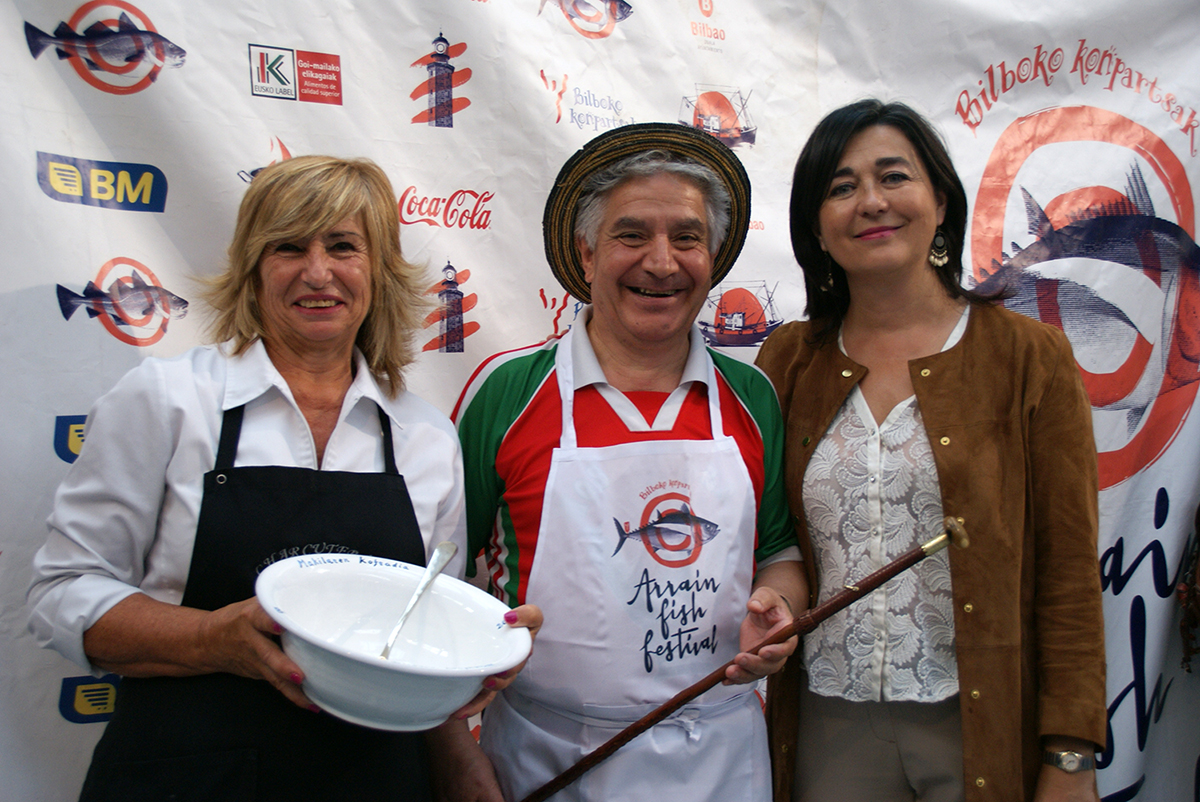 El Bilboko Konpartsak Arrain Fish Festival (BKAFF) de Aste Nagusia es el reflejo del modelo de fiestas populares que impulsa Bilboko Konpartsak: “la participación popular y el tomar la calle; las personas que se animen a inscribirse para participar deberán preparar los productos de la mar básicos en nuestra cultura, en el recinto festivo del Arenal, durante los mediodías de miércoles a sábado. De hecho, los productos de la mar han sido importantes en nuestra gastronomía desde siempre y el mercado de la Ribera, que antaño fue el primer puerto de Bilbao, es referente también hoy en día para las y los bilbainos”. Por ello, durante la presentación de BKAFF, Bilboko Konpartsak ha galardonado con el premio Cucharón del Arenal al Mercado de la Ribera. El premio lo han recogido Ascensión Andrés, vicepresidenta de la asociación de comerciantes del mercado y Yolanda Diez, concejala de salud y consumo del ayuntamiento.