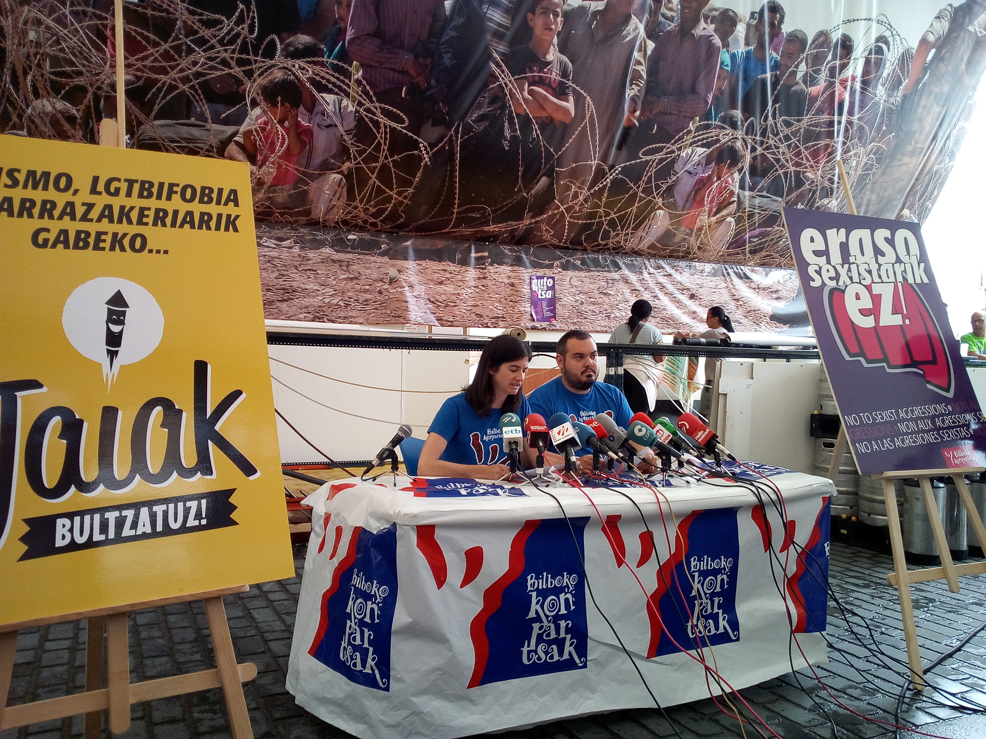 Y de nuevo este año, la polémica ha salpicado a nuestras fiestas. Polémica surgida desde las frías paredes de los censores y aquellos que se suben a los ascensores, y siempre con la inestimable ayuda de la prensa sensacionalista. Una vez más los resentidos han intentado atacar el modelo festivo sin éxito alguno, puesto que ante semejante montaje el pueblo ha vuelto a respaldar el modelo festivo, ya consagrado de Aste Nagusia, con HUMOR, LIBERTAD DE EXPRESION Y APOSTANDO POR EL CAMBIO SOCIAL. Porque la Aste Nagusia es diversa y plural.