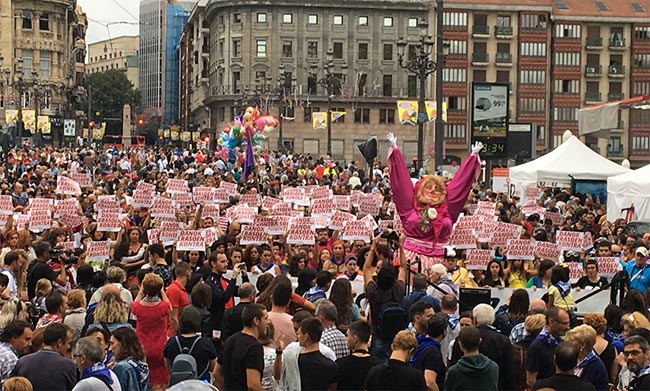 Estamos hasta el coño de vosotros, fuera de Aste Nagusia; ¡quedaos vosotros en casa! Si no, no recibiréis más que leña. Se nos ha agotado la pedagogía, ¡se ha activado el poder lila!