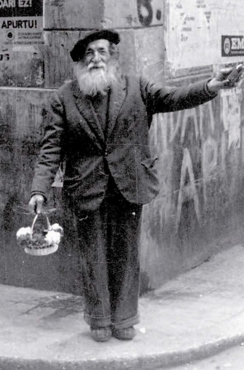 Bere bizitzari buruz ezer gutxi dakigu: Bilbora gerra aurretik iritsi eta lan prekario eta gaizki ordainduetan bizitza bilatzen joan zen. Zurrutari alai honek, bizpahiru txikito edan eta gero haizeari esaten zion maiz Pablo Iglesias Posseren iloba zela. Inork ez daki hori egia ote zen, baina, zalantzarik gabe kontzientziadun gizon honek askatasuna maite zuen eta etxebizitzaren beharraz aberasten zirenak gorroto zituen. Horregatik nazkatu zen kartoiak biltzen irabazten zuen diru apurra pentsio batean gastatzeaz. Egia da esaten duten hori: inork ez ditu etxegabeak kalean bizitzera behartzen, kalean bizirautera bultzatzen dituzte.