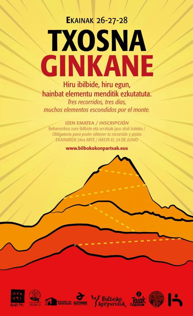 Txosnagane menditk lehenengo orientazio ibilbidea. Parte hartzaileek ekainaren 26tik 28ra txosnagane eta inguruko elementu desberdinak bilatu behar izango dituzte aurretik zehaztutako ibilbide batean zehar. Ibilbideak bilboko auzo desberdinetan amaituko dira.